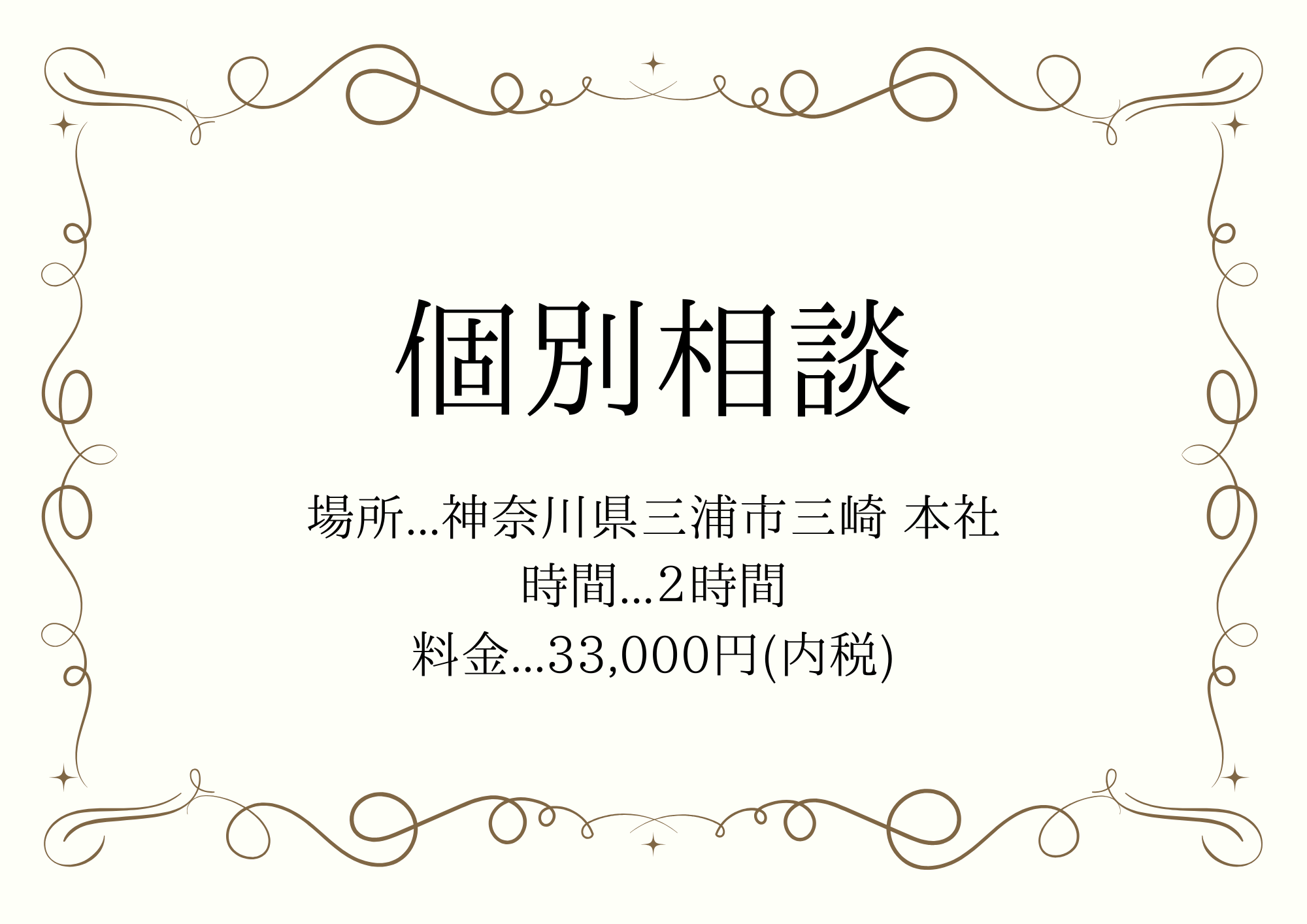 ただし条件としては、神奈川県三浦市三崎の本社まで来ていただくこと、そして2時間で33,000円の費用をいただきます。